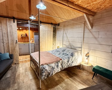 Offrez-vous une escapade inoubliable au Chalet Coccinelle, un hébergement chaleureux et tout confort, idéal pour 2 à 4 personnes. Profitez d’une cuisine équipée, d’un poêle à bois et d’une terrasse privative pour un séjour en pleine nature.