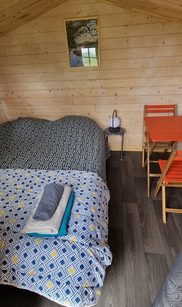 Un lit double confortable vous attend, ou des lits séparés sur demande, pour une expérience unique dans le Cézallier.