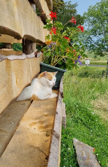 Mimine, notre mascotte féline, inspecte les lieux avec vigilance et apporte sa touche de gaieté à votre séjour.